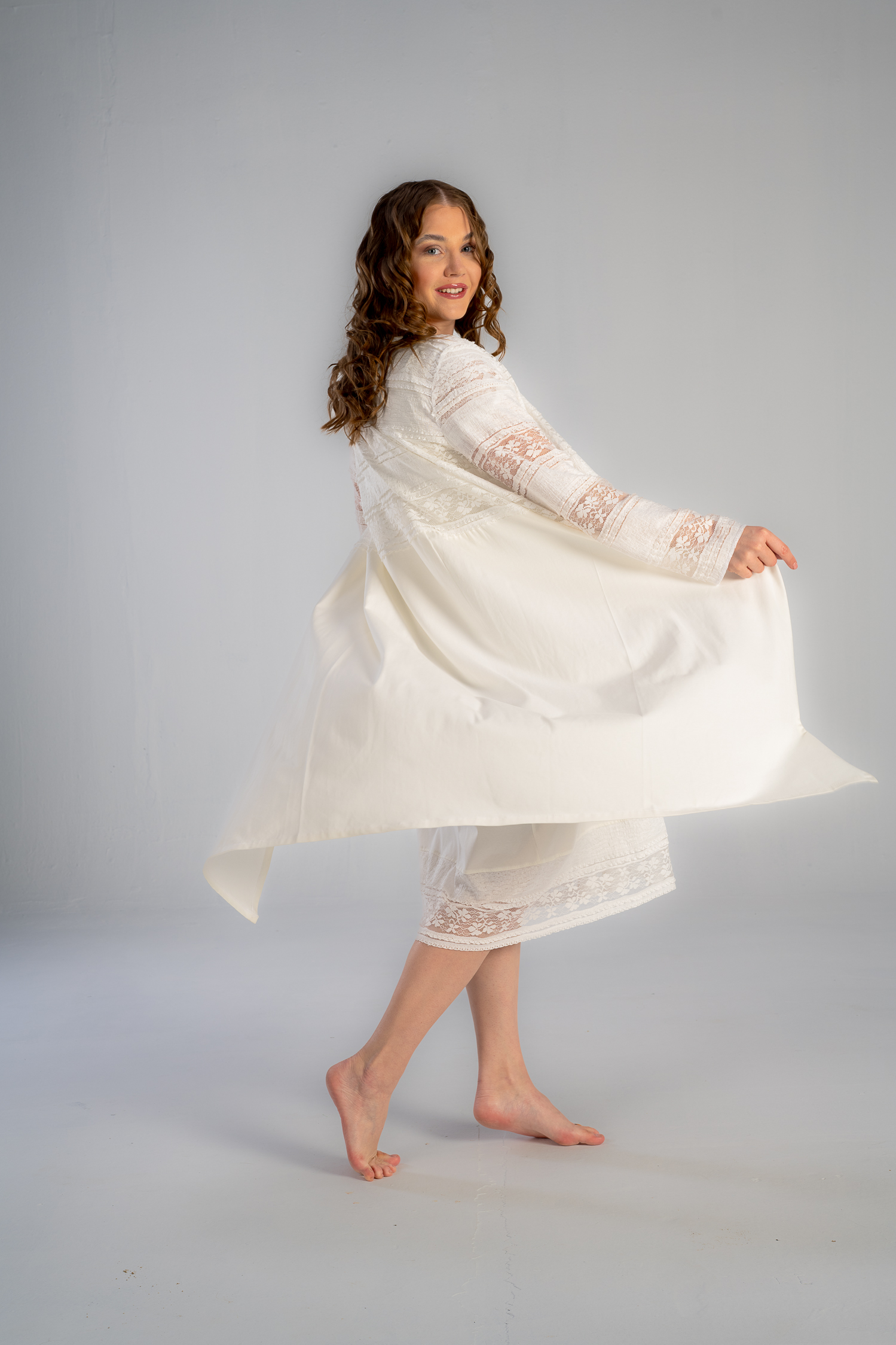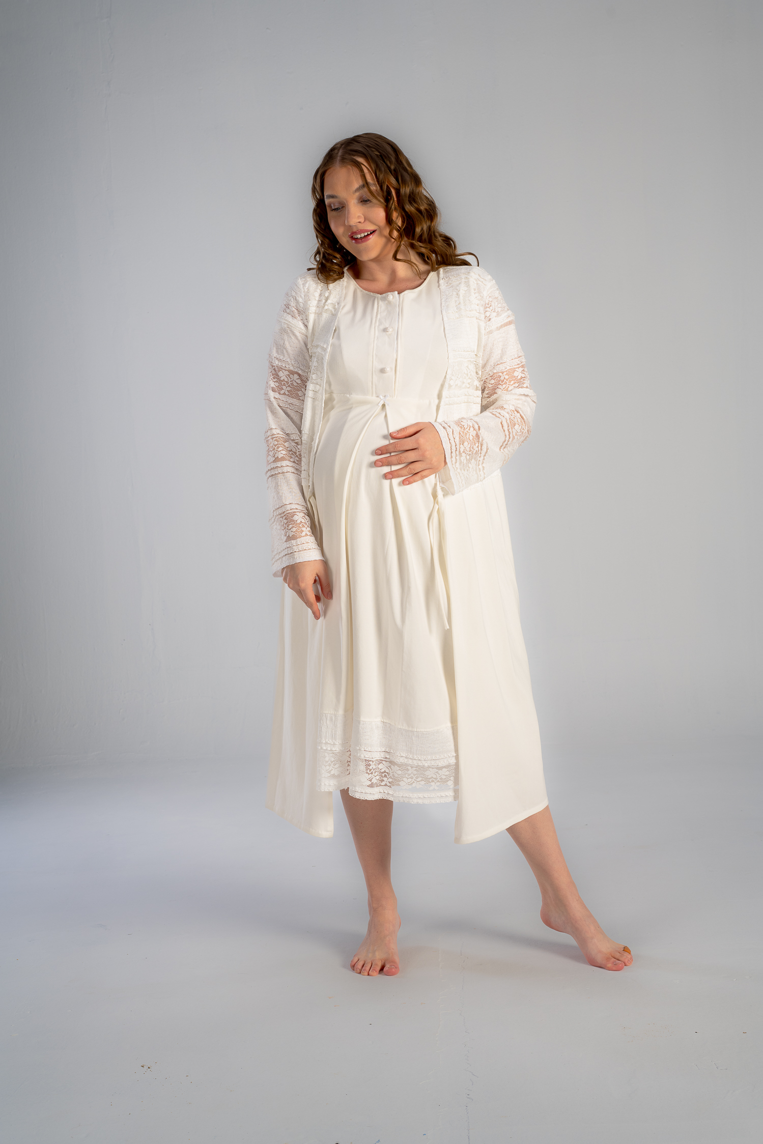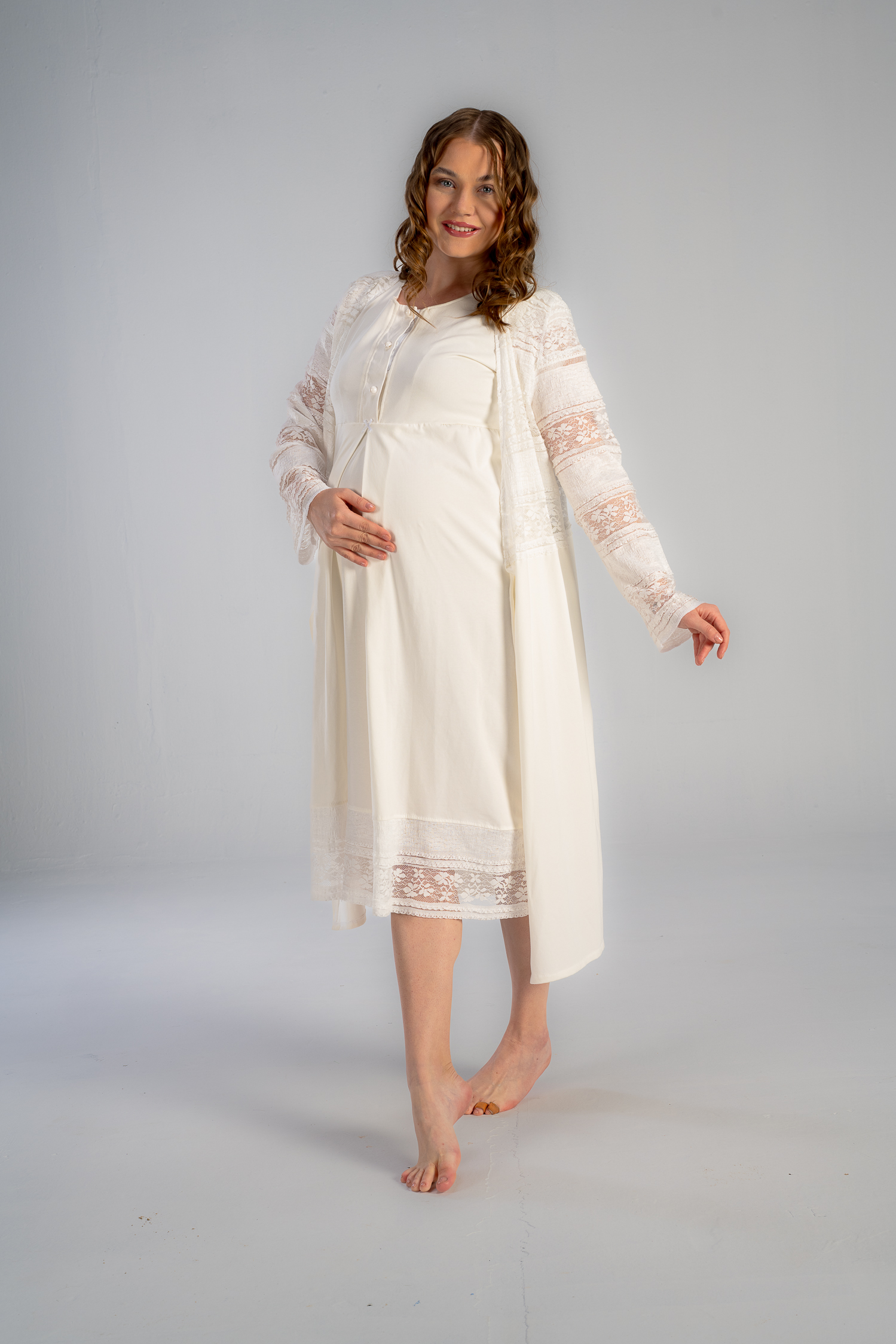 الروب الميدي مصمم للحمل، والرضاعة، وما بعدها، هذا الروب يتميز بالنعومًة مع دانتيل رقيق مع تفاصيل ساتان جميلة.