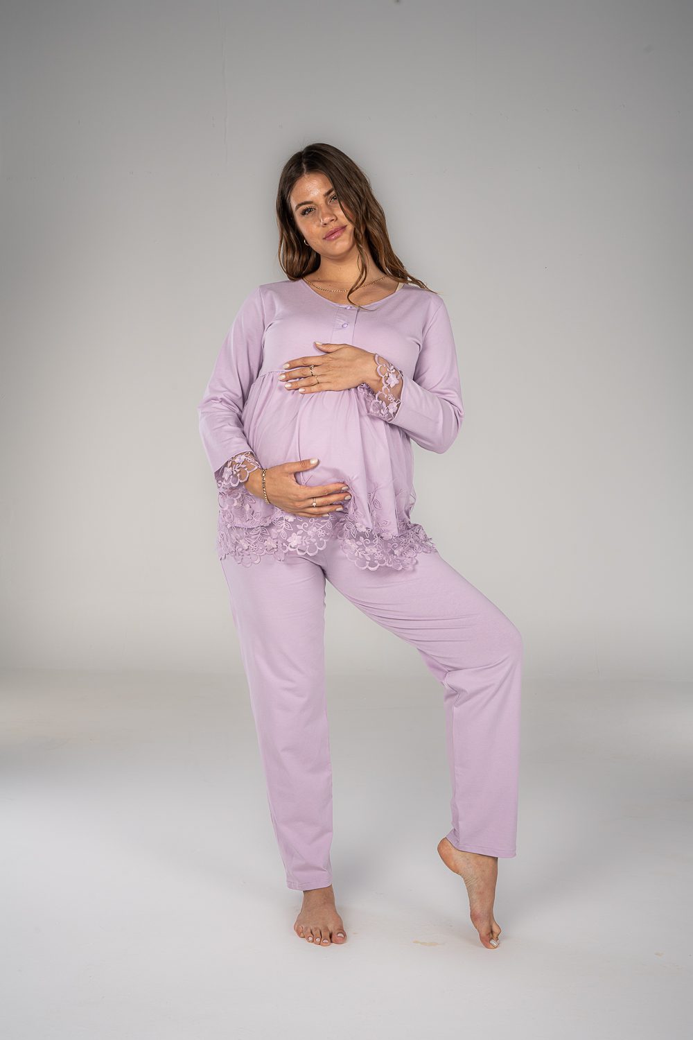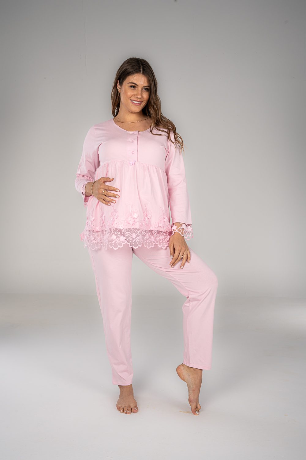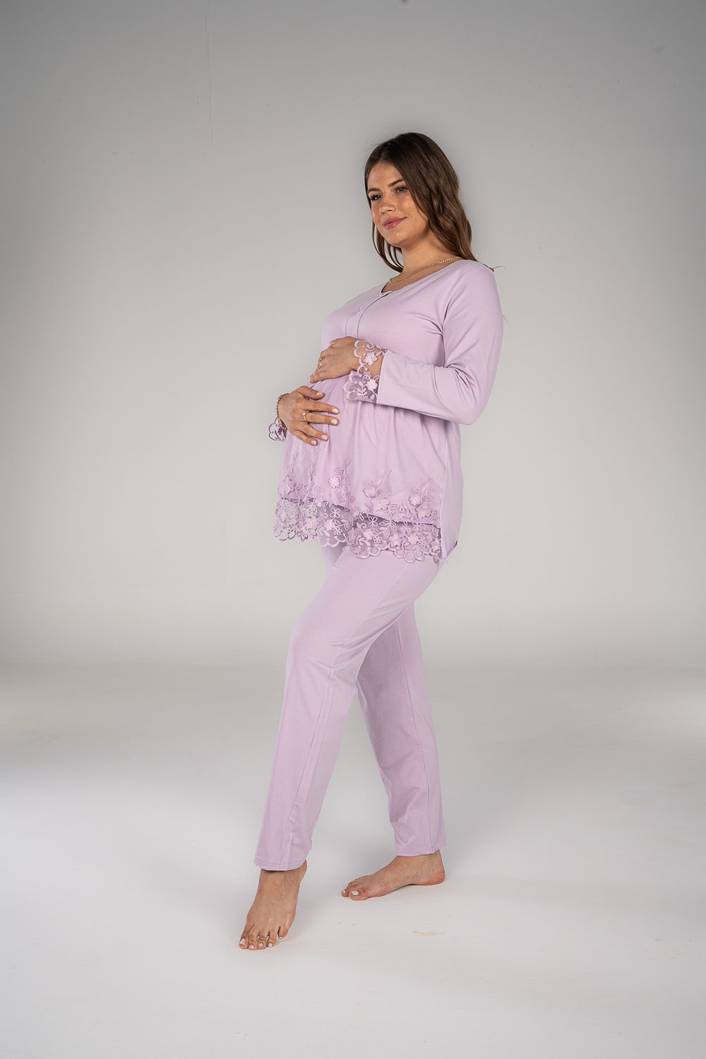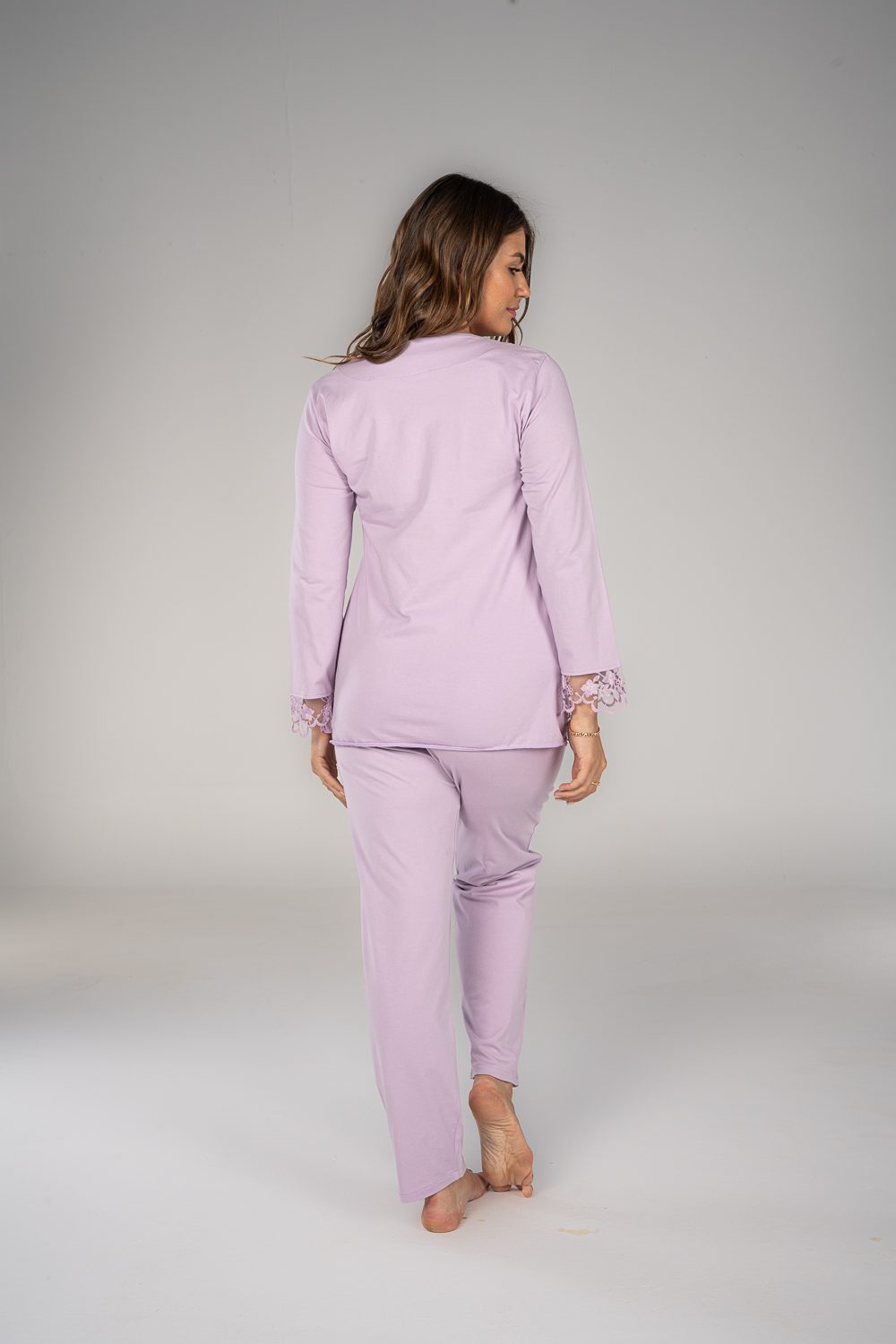 استمتعي بالراحة في بيجاما الكم الطويل. تتميز بخامة قطنية ناعمة و فتحة صدر تساعدك في الرضاعة و يحتوي علي الدانتيل الخفيف للمسة ناعمة و مميزة.