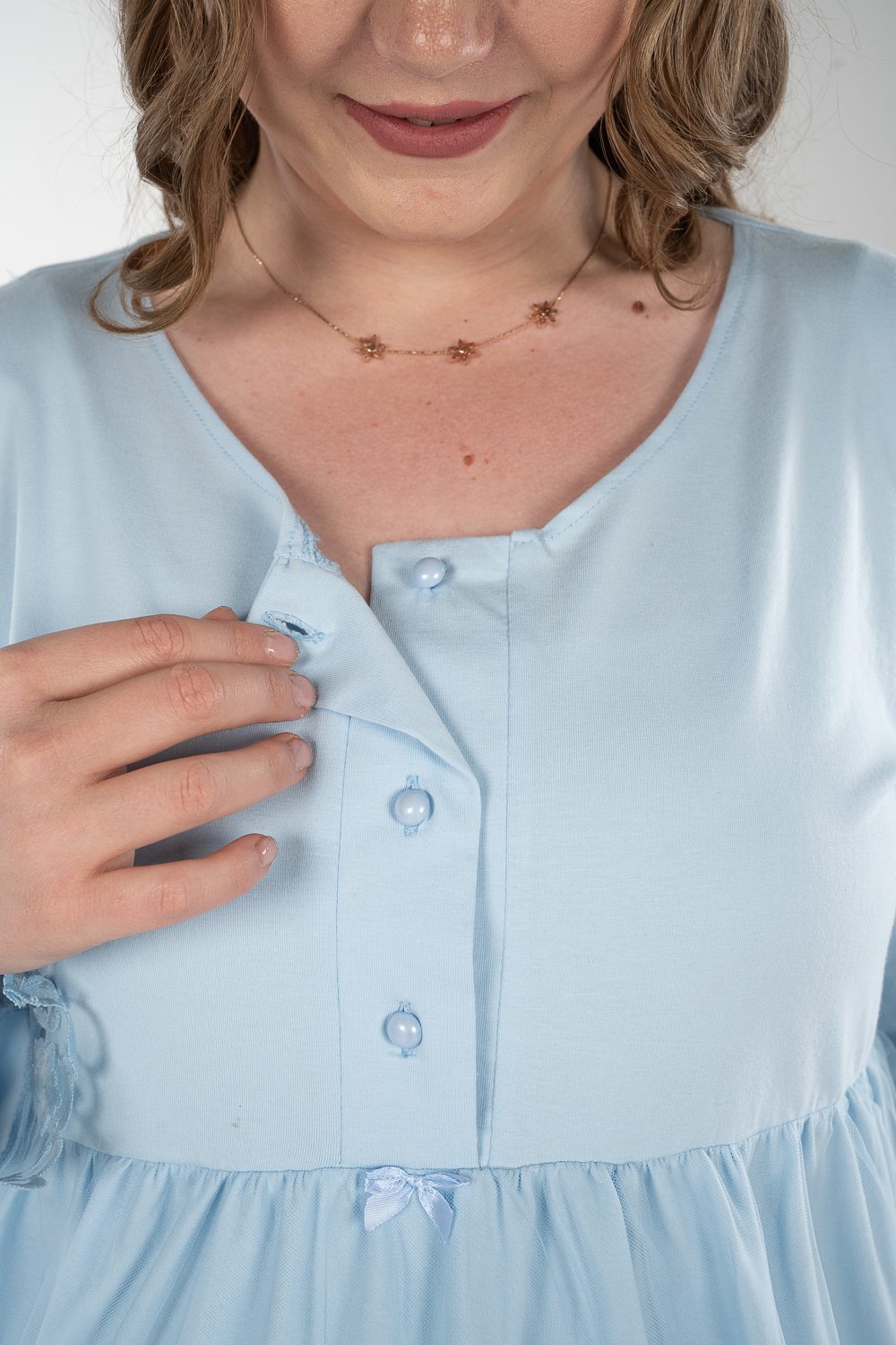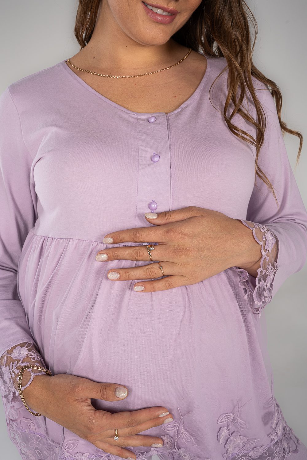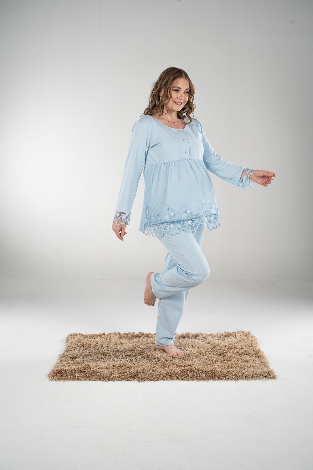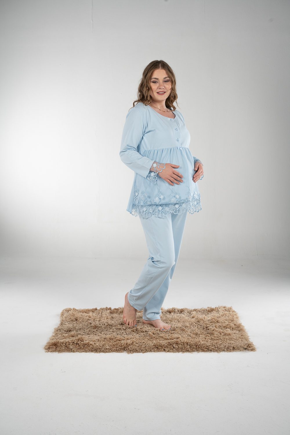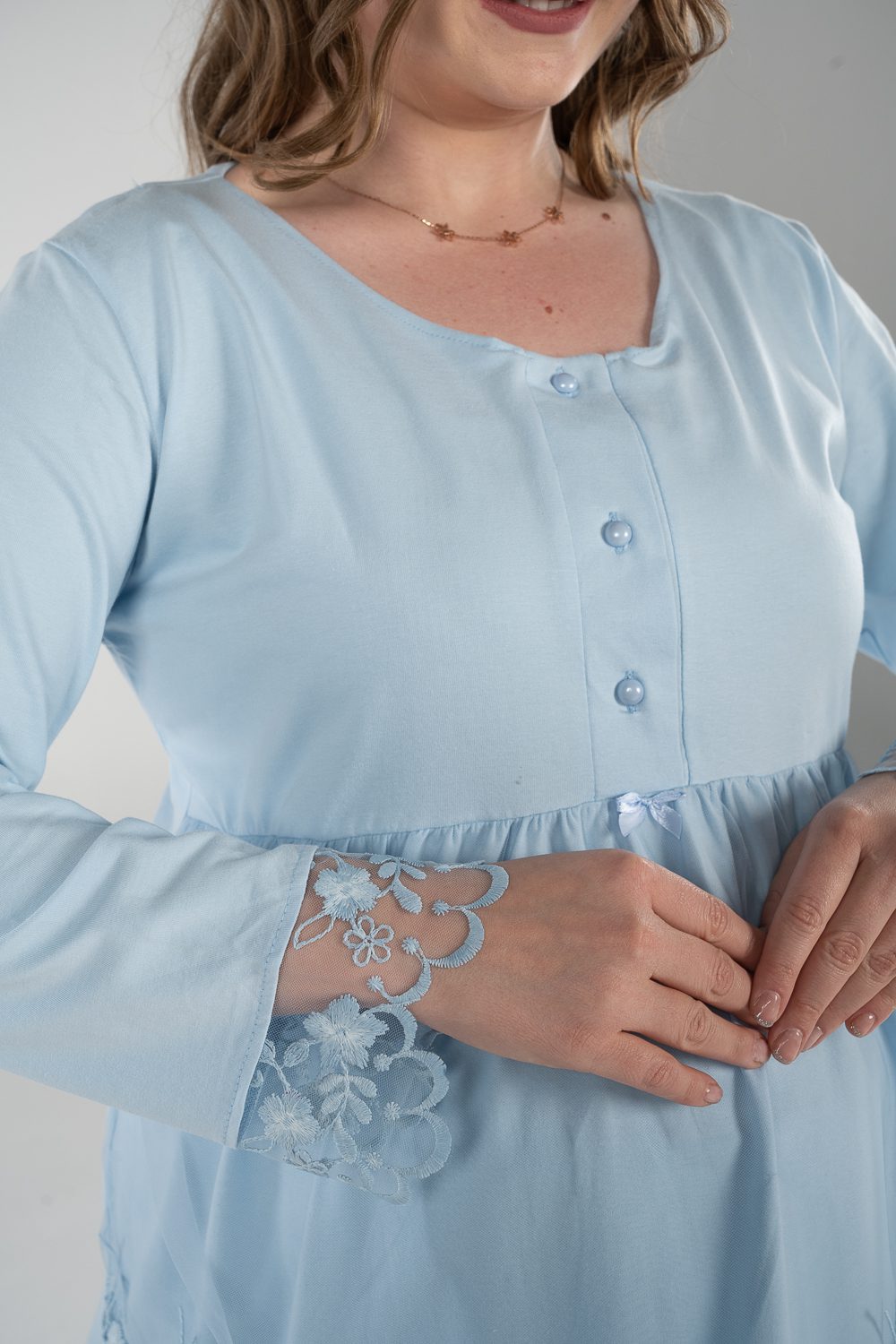 استمتعي بالراحة في بيجاما الكم الطويل. تتميز بخامة قطنية ناعمة و فتحة صدر تساعدك في الرضاعة و يحتوي علي الدانتيل الخفيف للمسة ناعمة و مميزة.