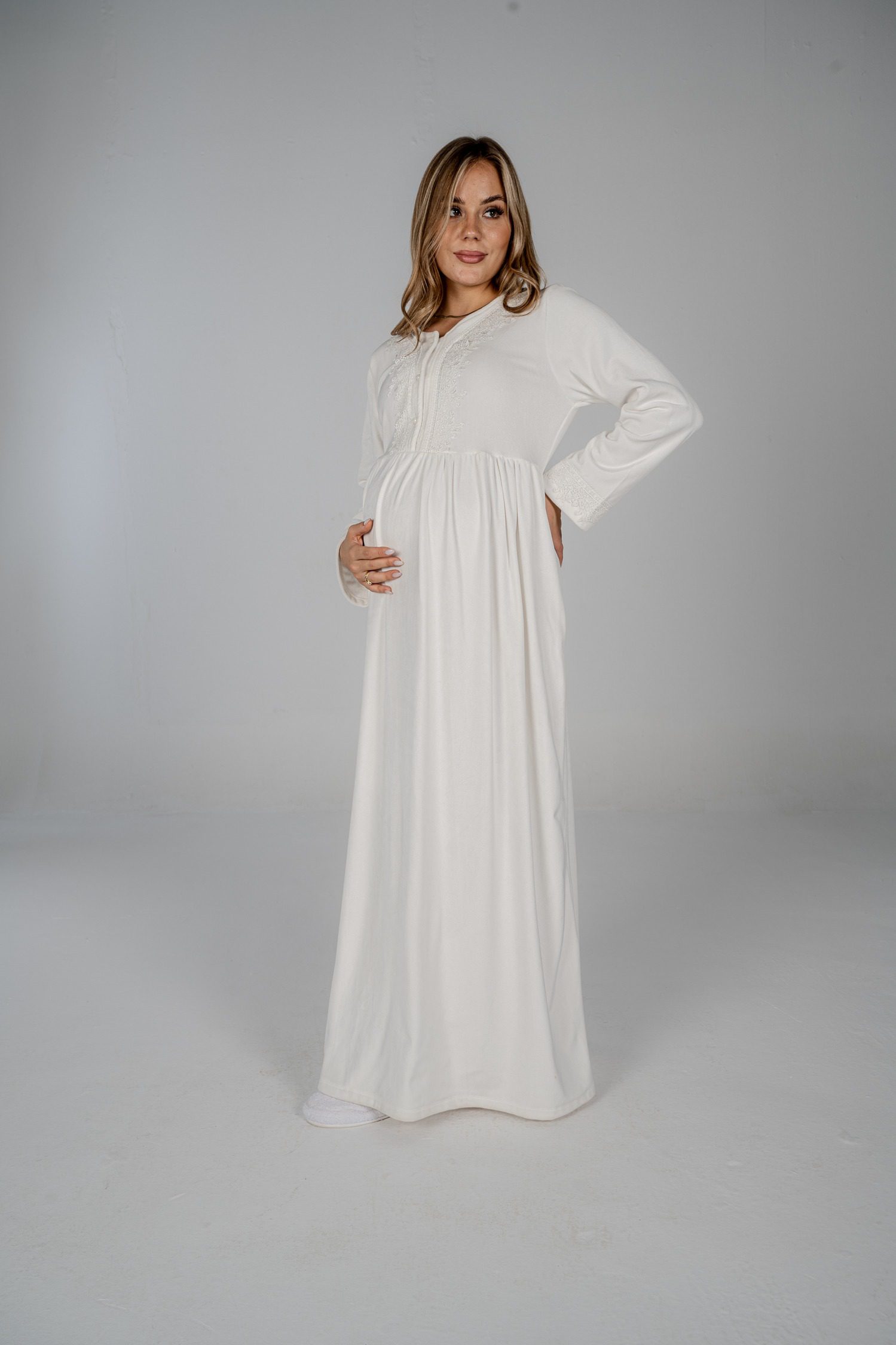 فيه زراير مناسبة للرضاعة ووسع من عند منطقة البطن لمزيد من الراحة.