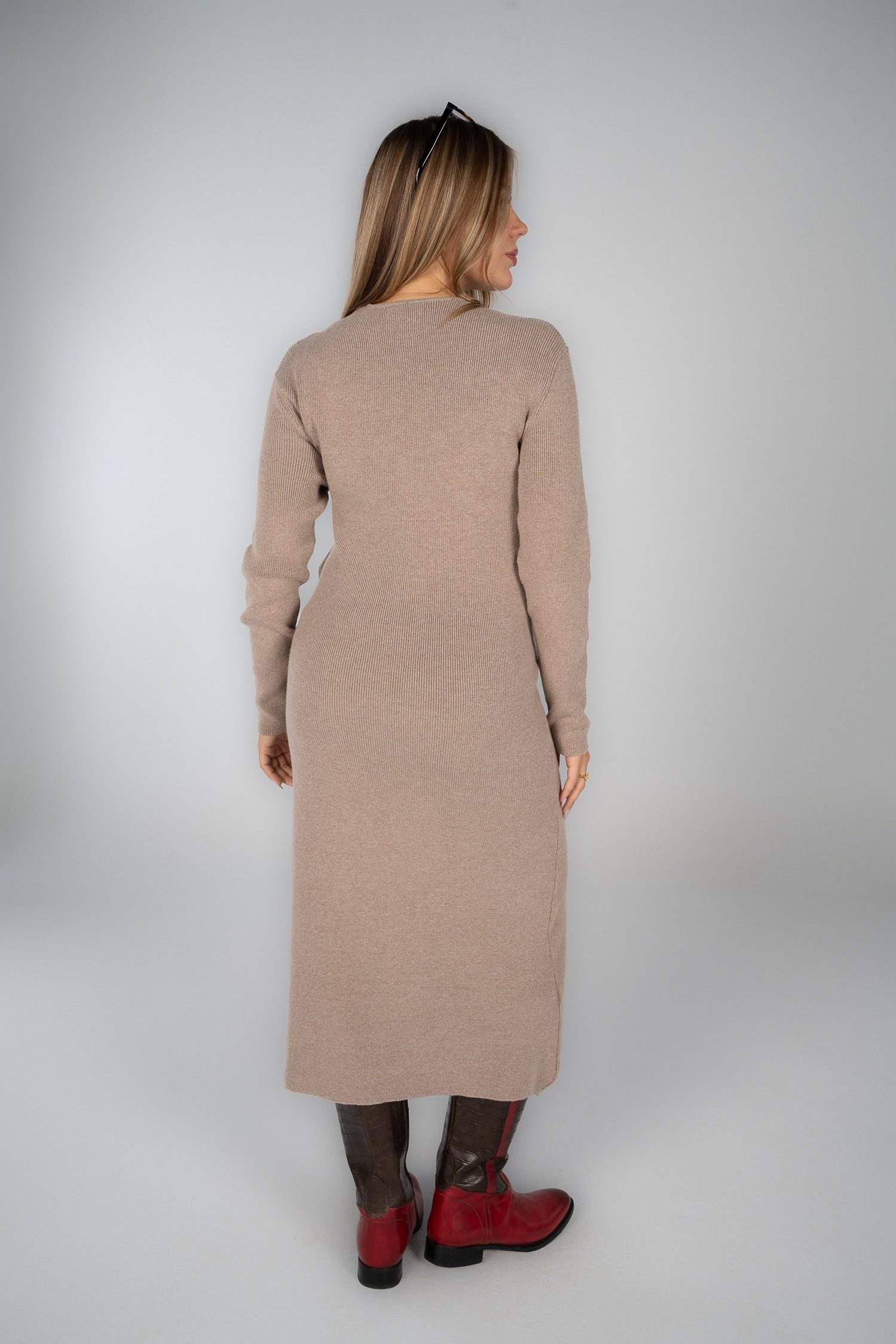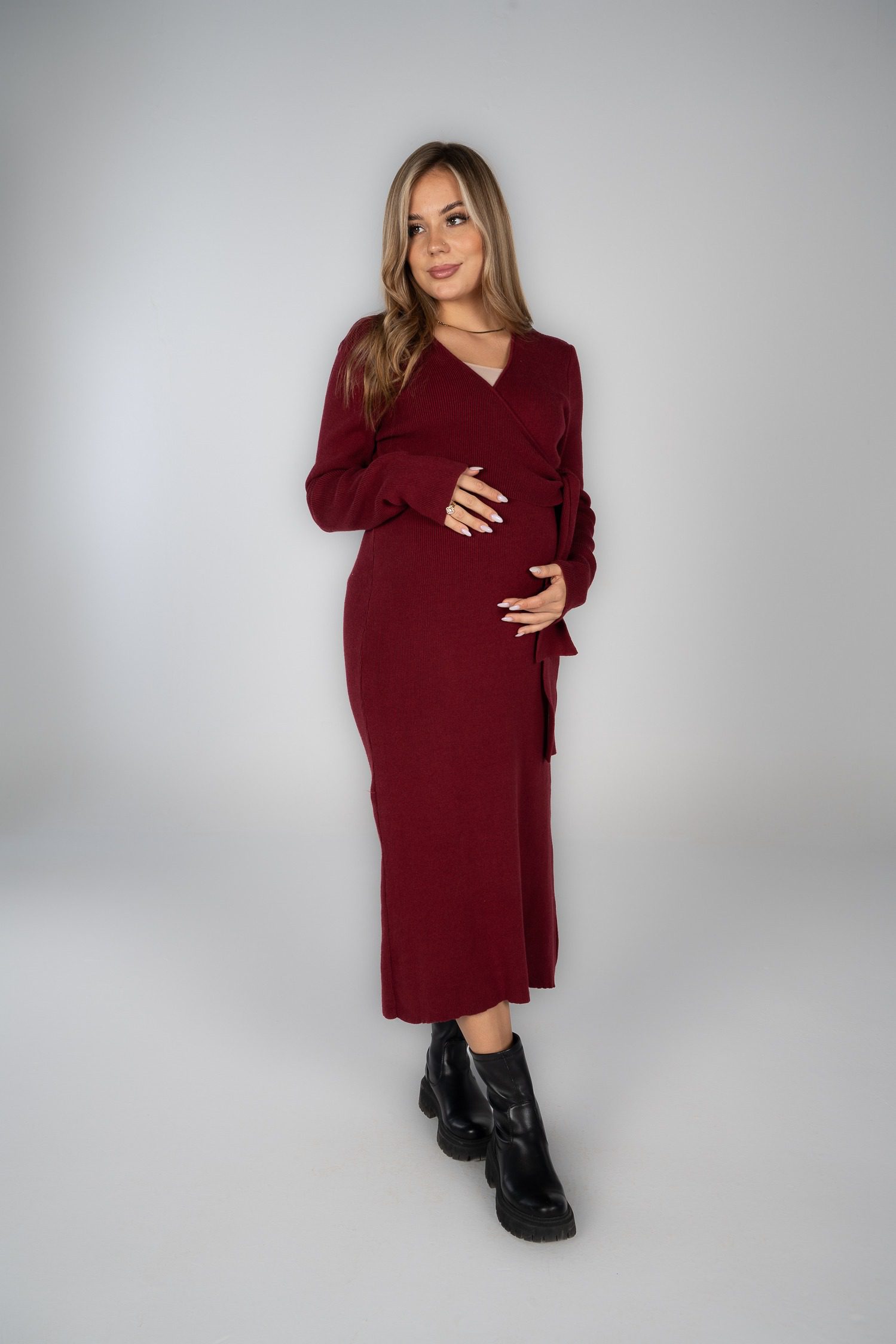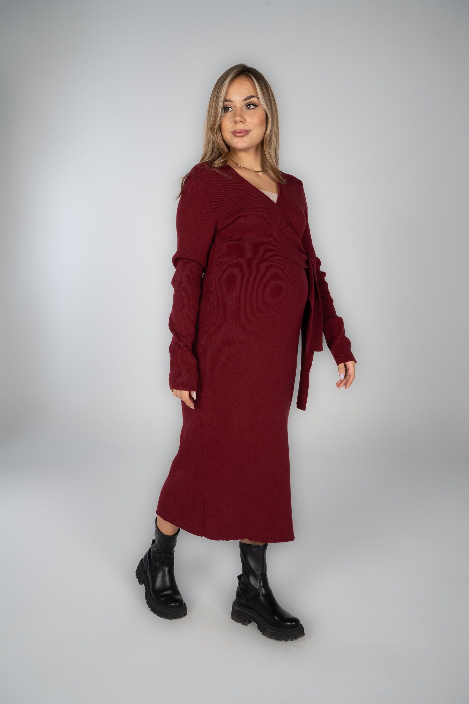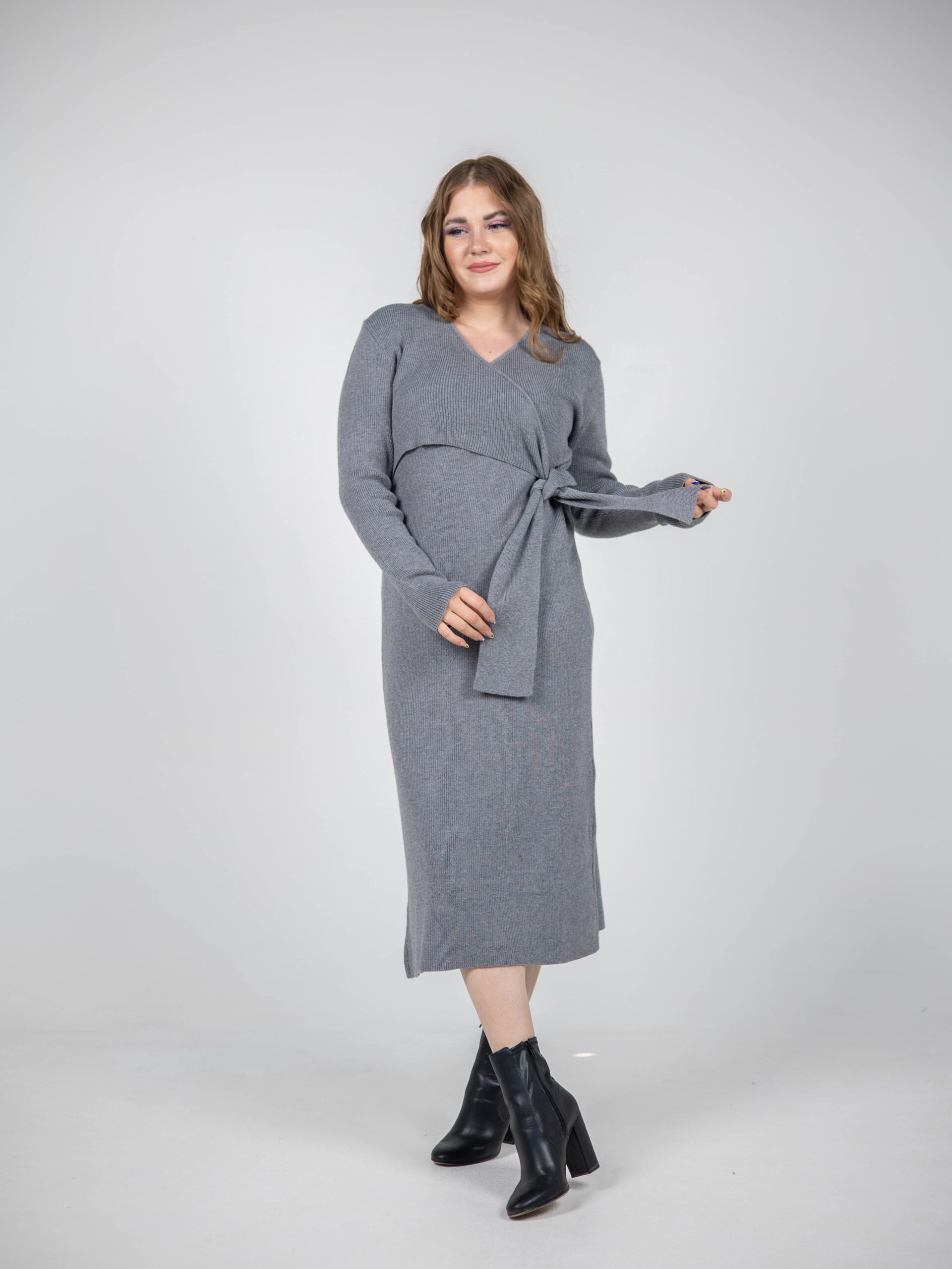 فستان شتوي أنيق من التريكو الناعم مع فتحة حزام عند الصدر لتجربة رضاعة سهلة.