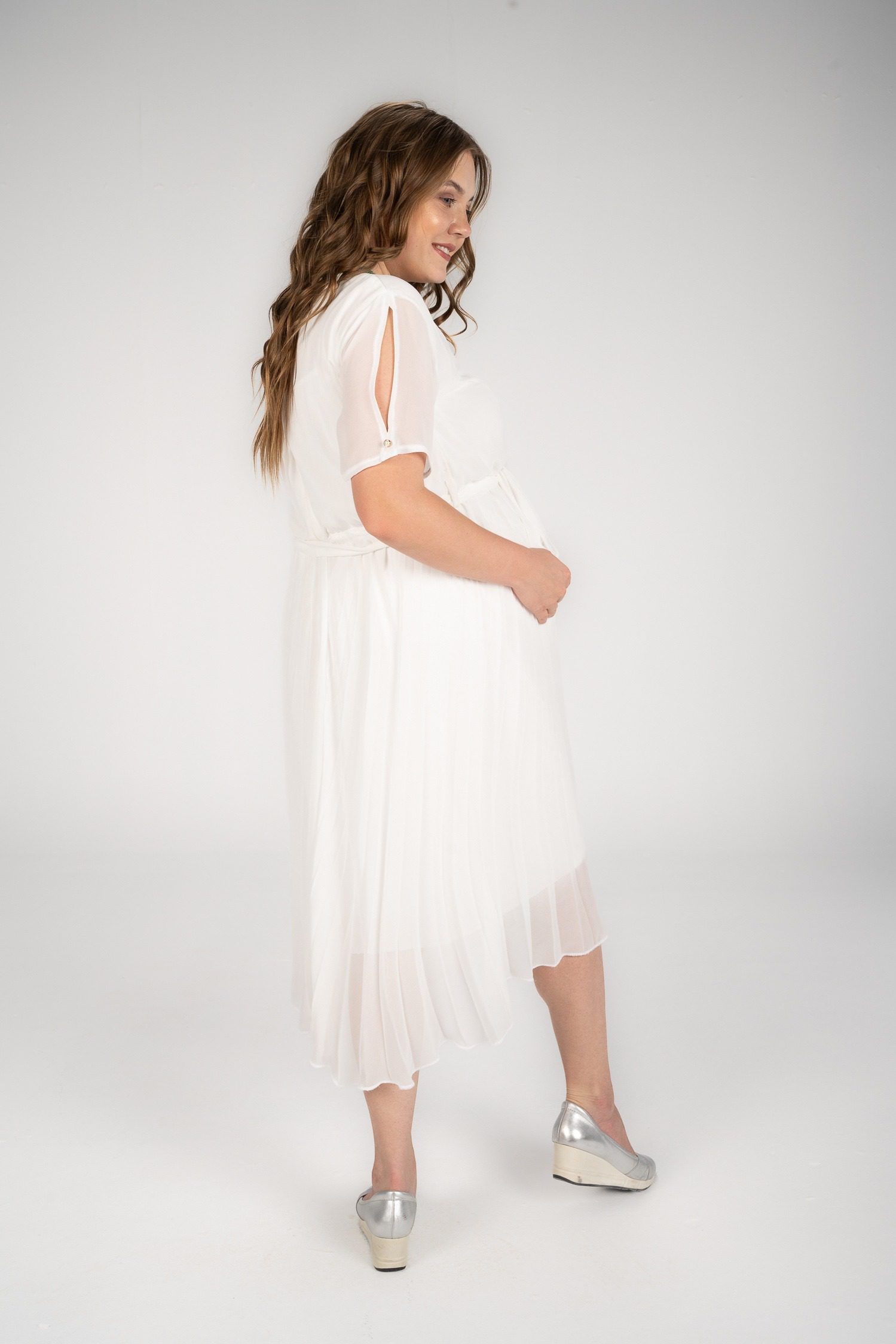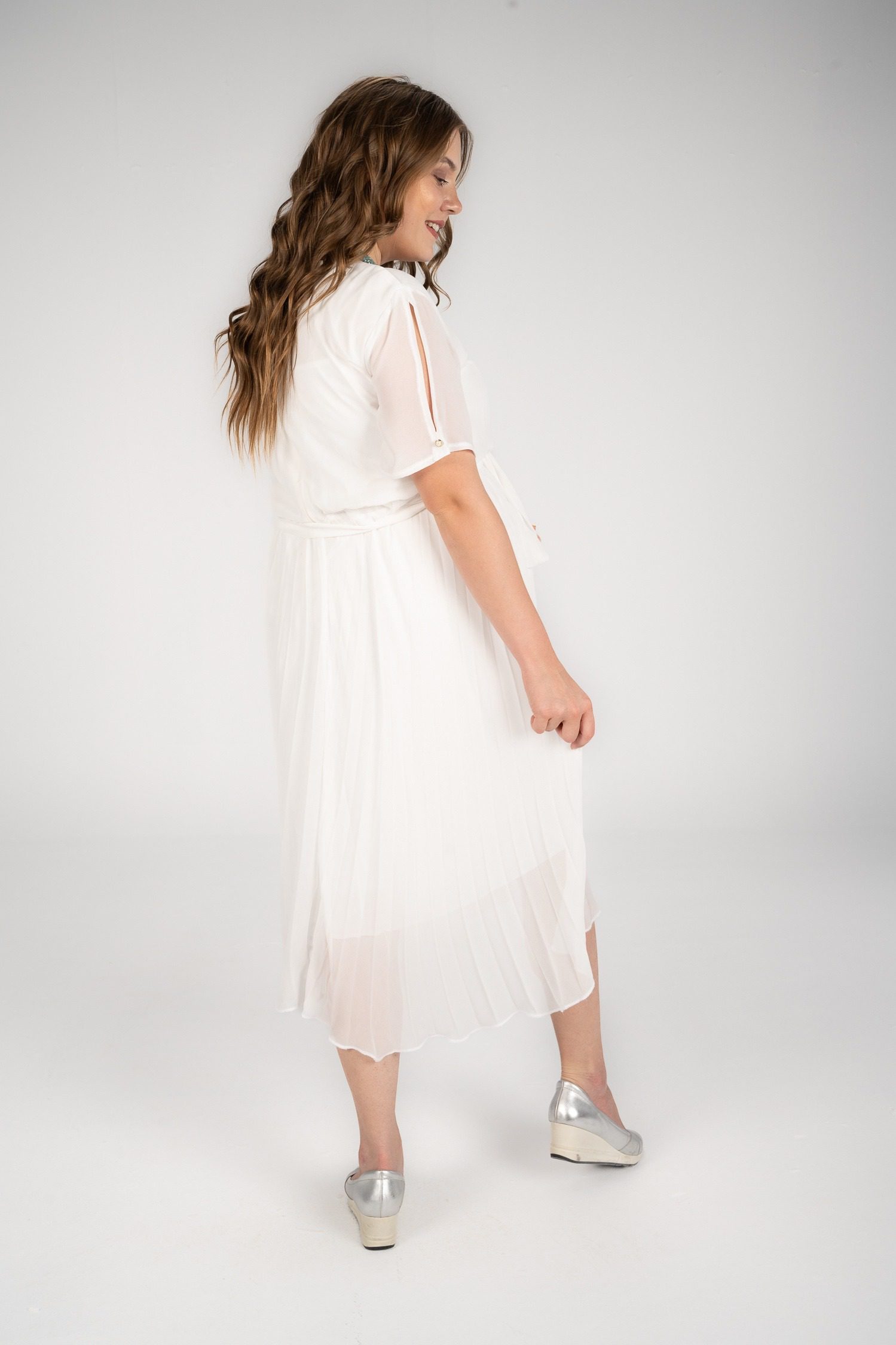فستان ميدي أبيض ناعم من الشيفون الناعم يناسب جميع المناسبات