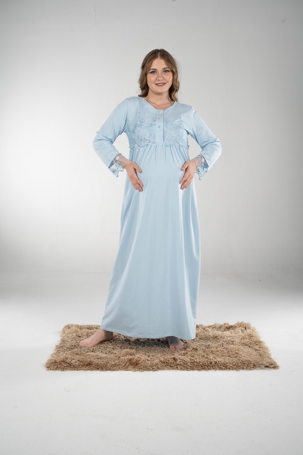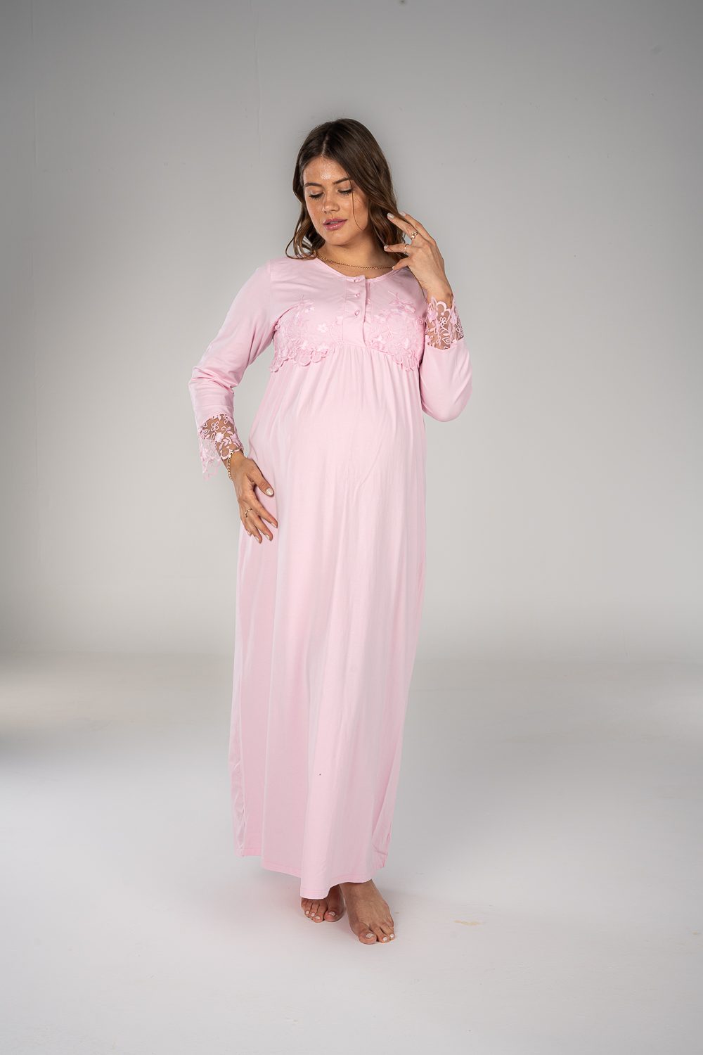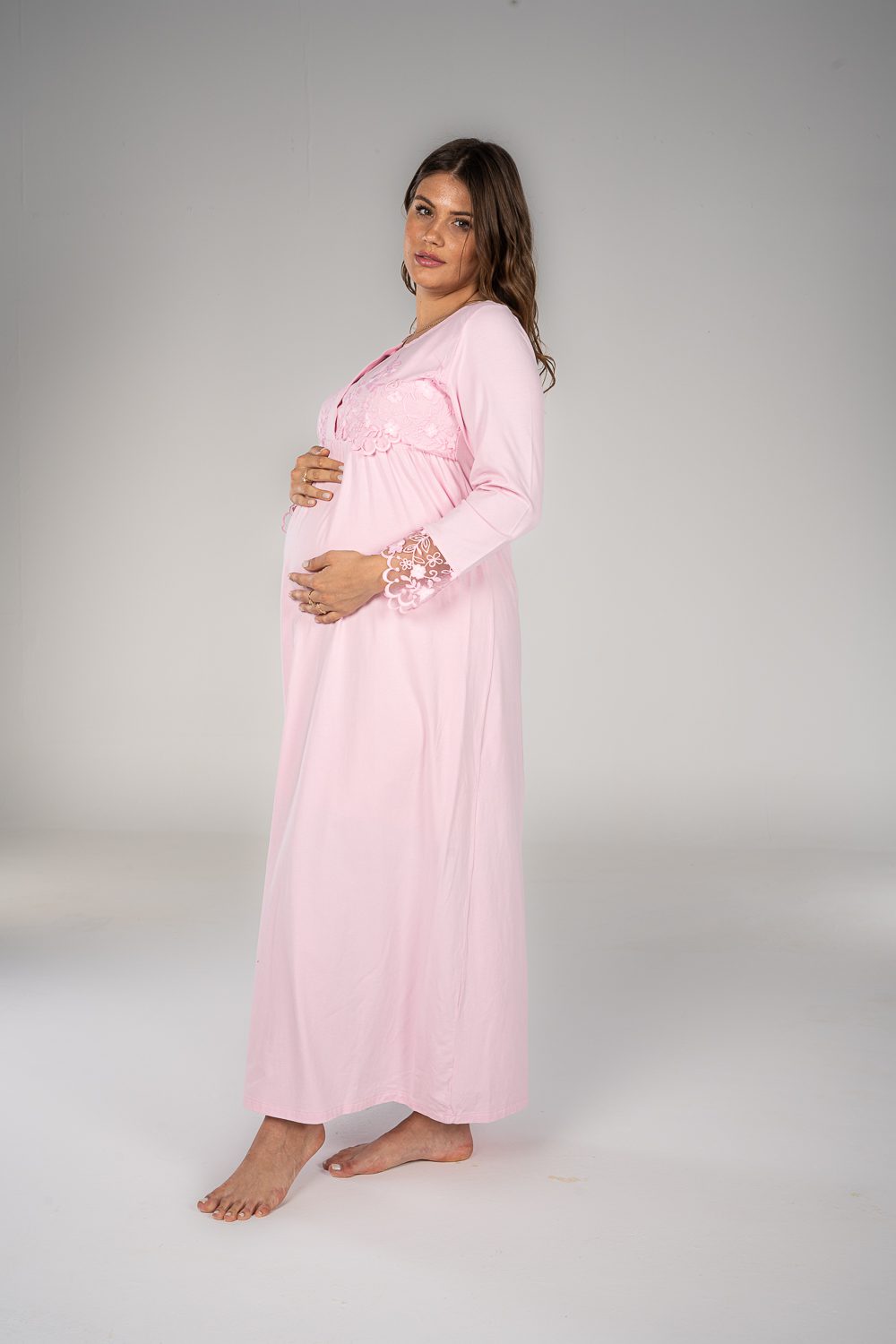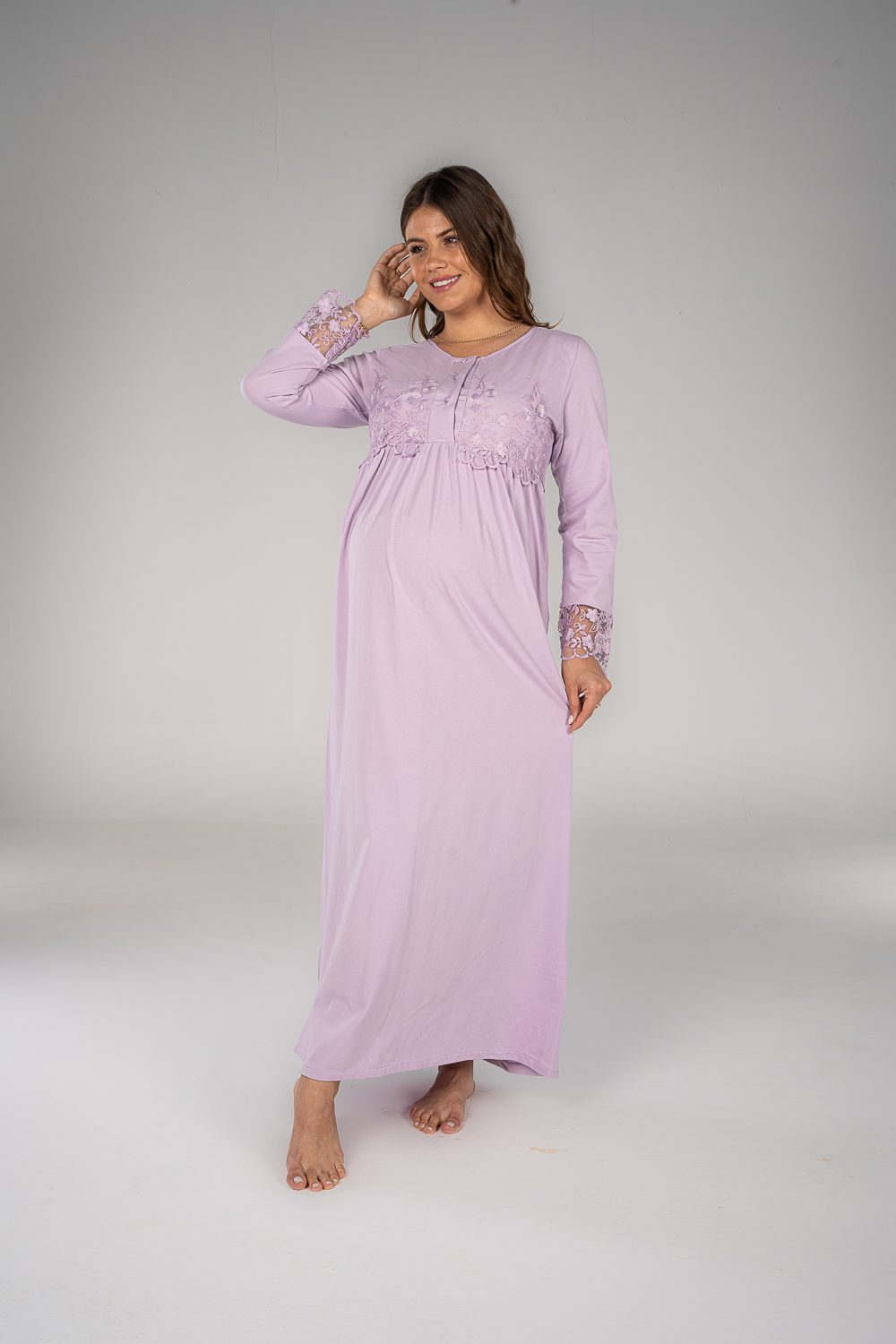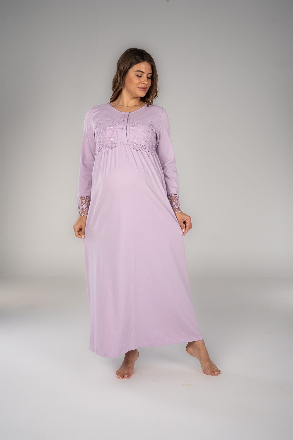 أشعري بالراحة الكاملة في قميص النوم الطويل. يتميز بخامة قطنية ناعمة و فتحة صدر تساعدك في الرضاعة و يحتوي علي الدانتيل الخفيف للمسة ناعمة و مميزة.