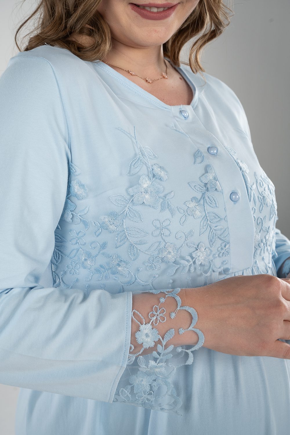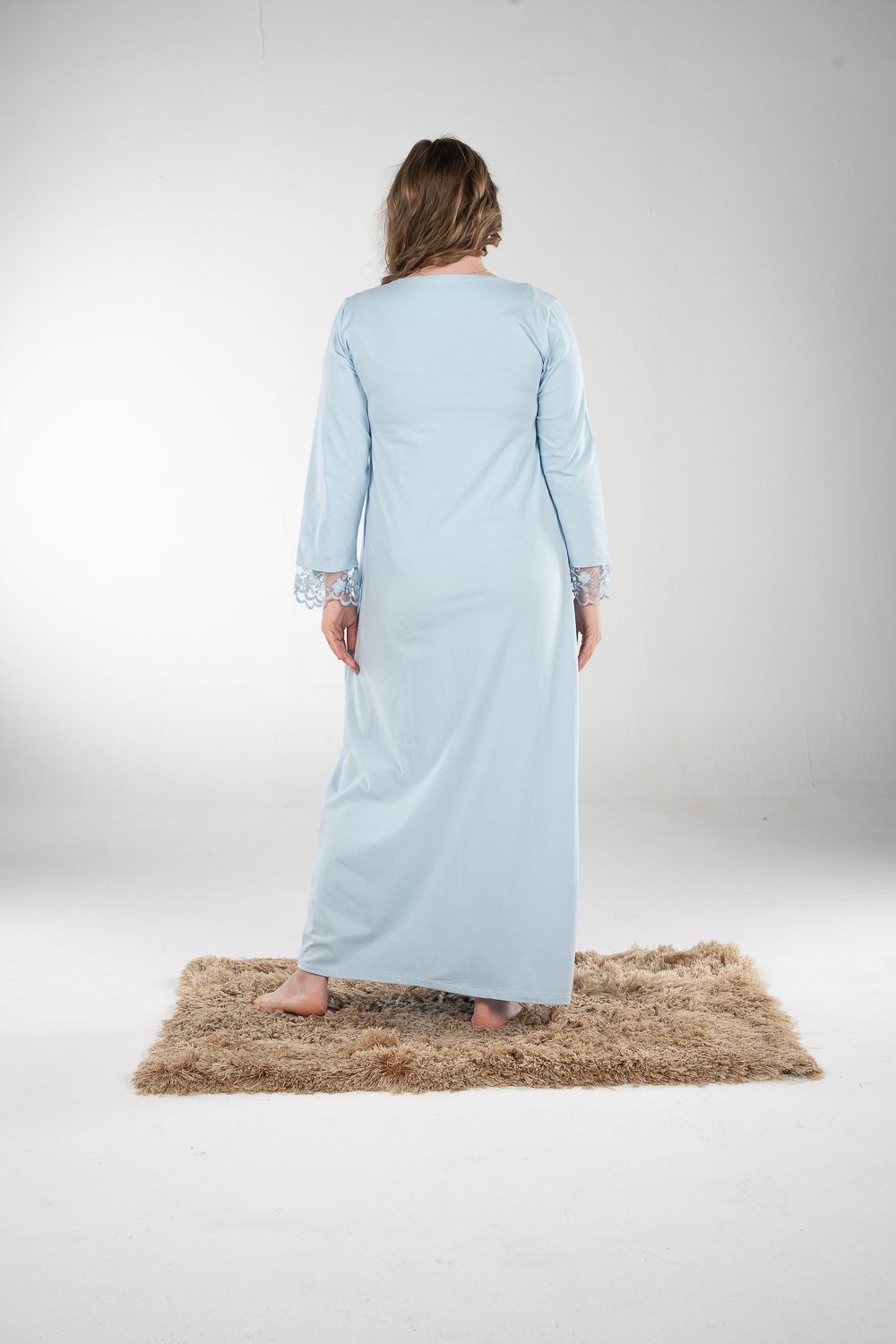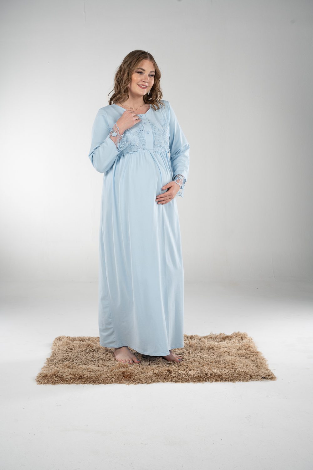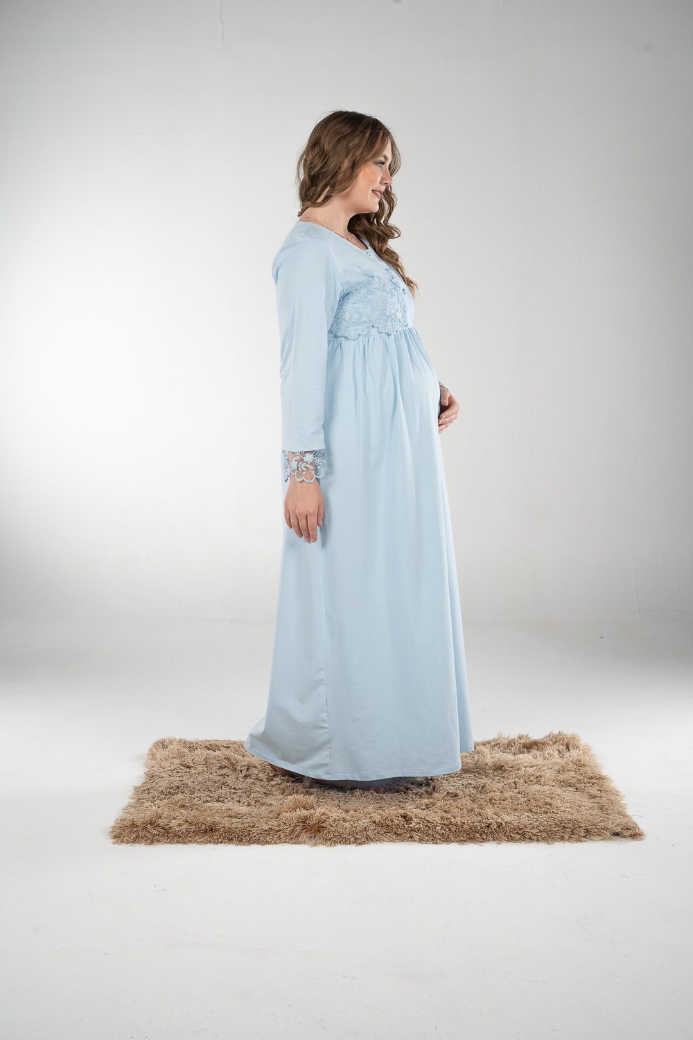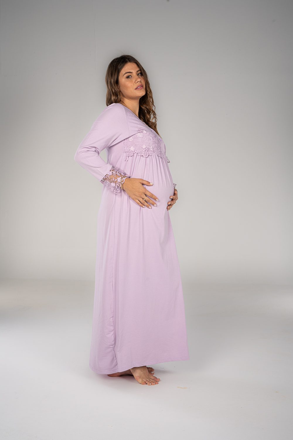 أشعري بالراحة الكاملة في قميص النوم الطويل. يتميز بخامة قطنية ناعمة و فتحة صدر تساعدك في الرضاعة و يحتوي علي الدانتيل الخفيف للمسة ناعمة و مميزة.