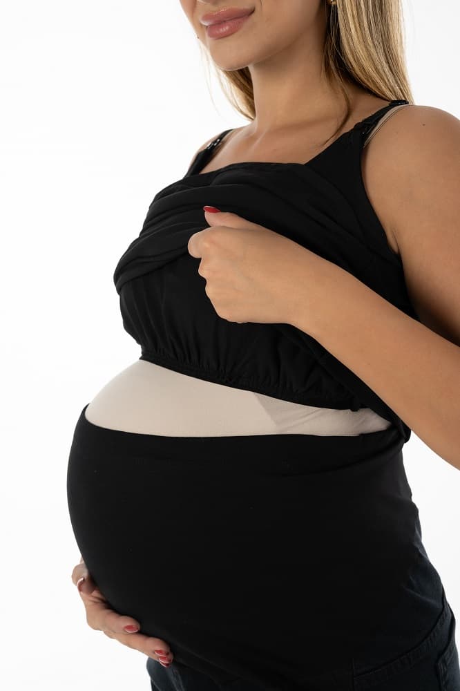 This nursing top is a comfortable and protective underlayer that can be worn on its own or underneath any desired top.