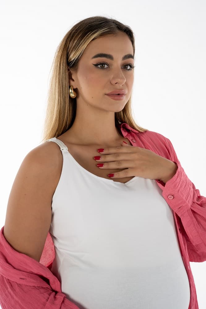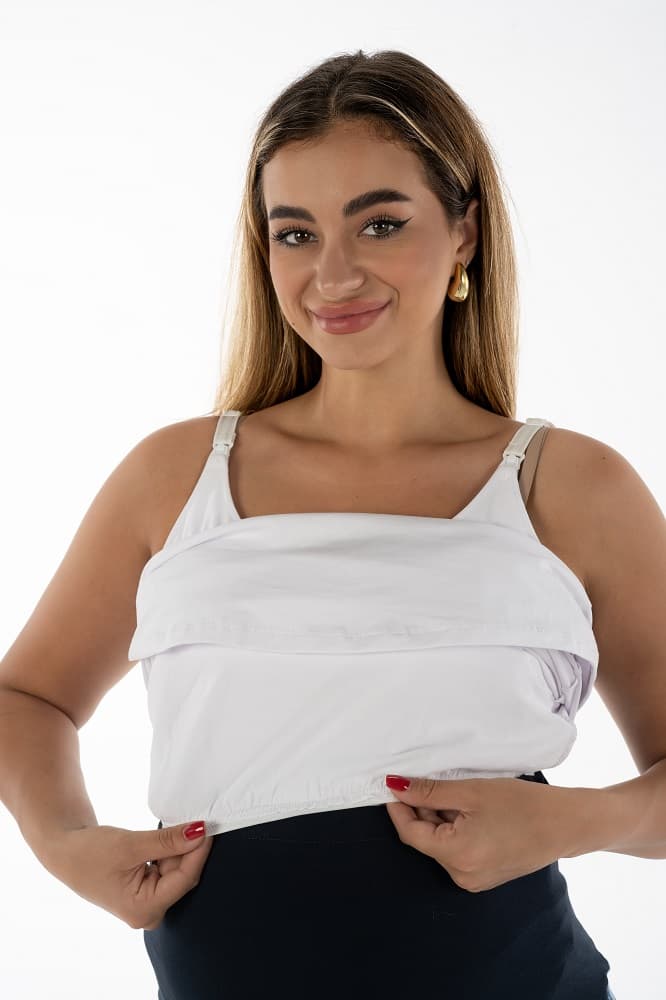 This nursing top is a comfortable and protective underlayer that can be worn on its own or underneath any desired top.