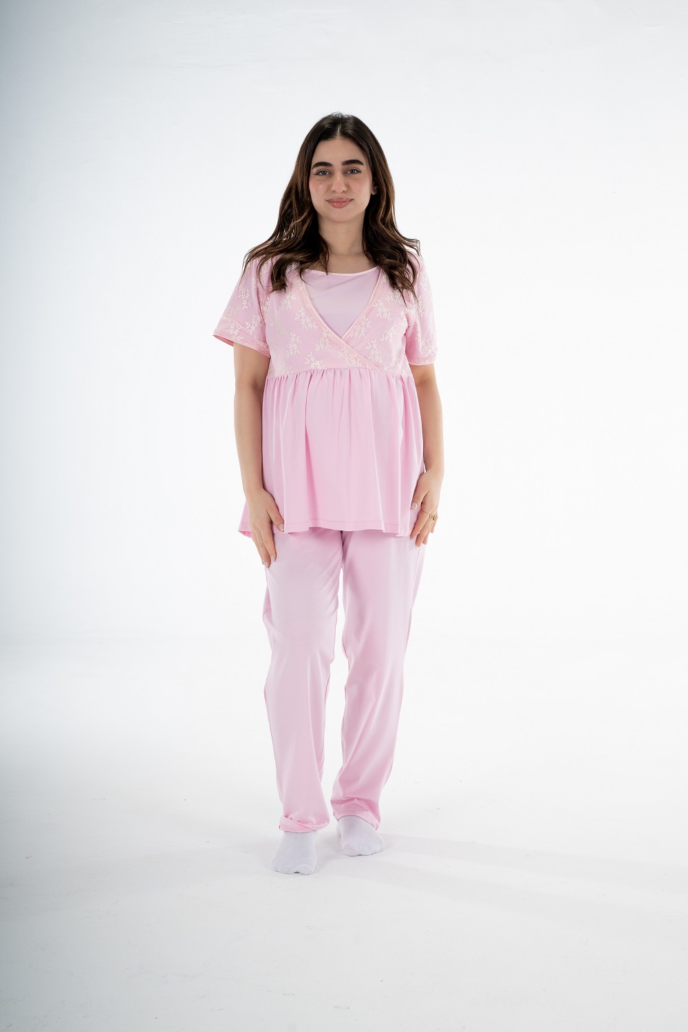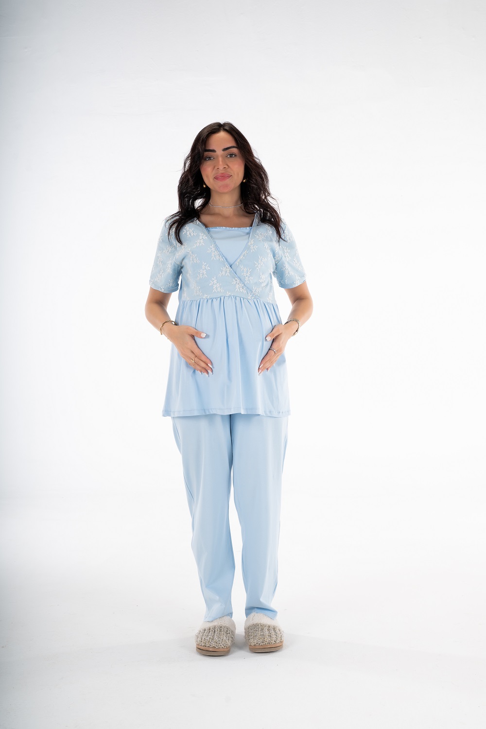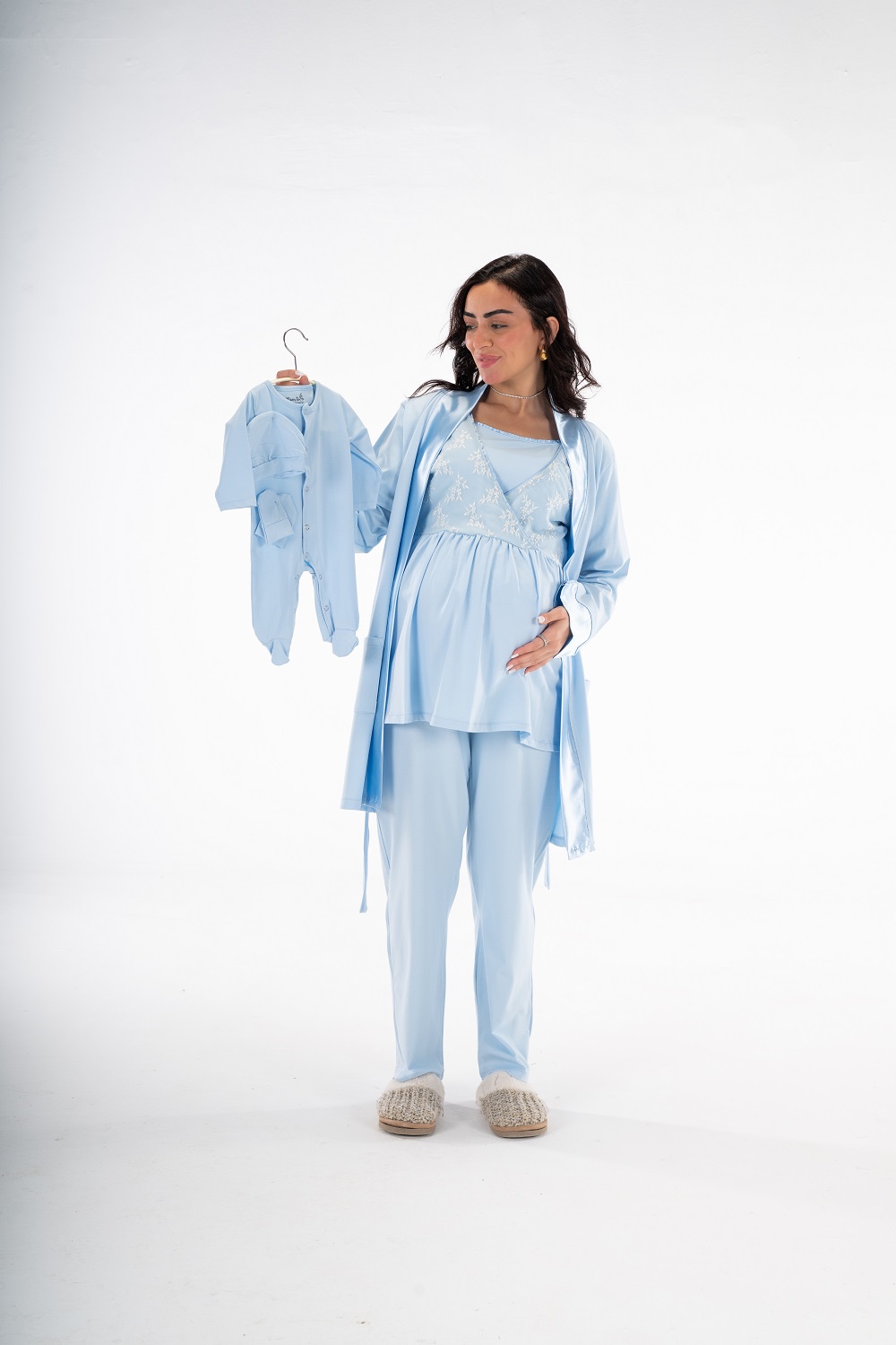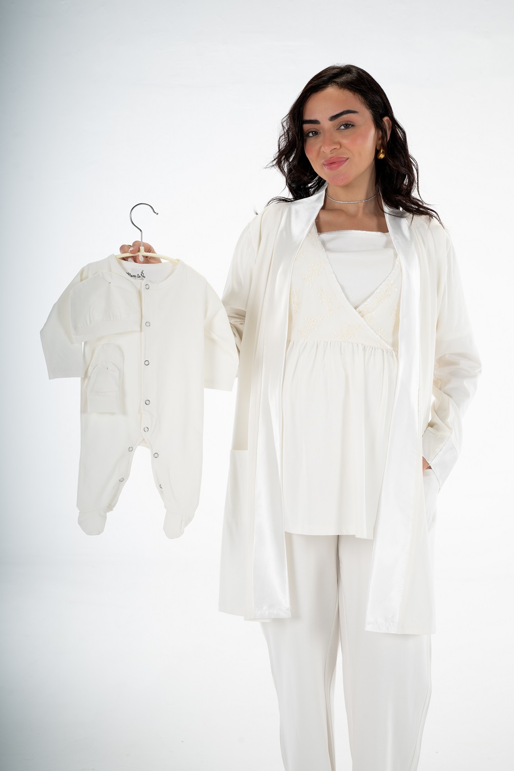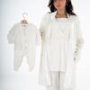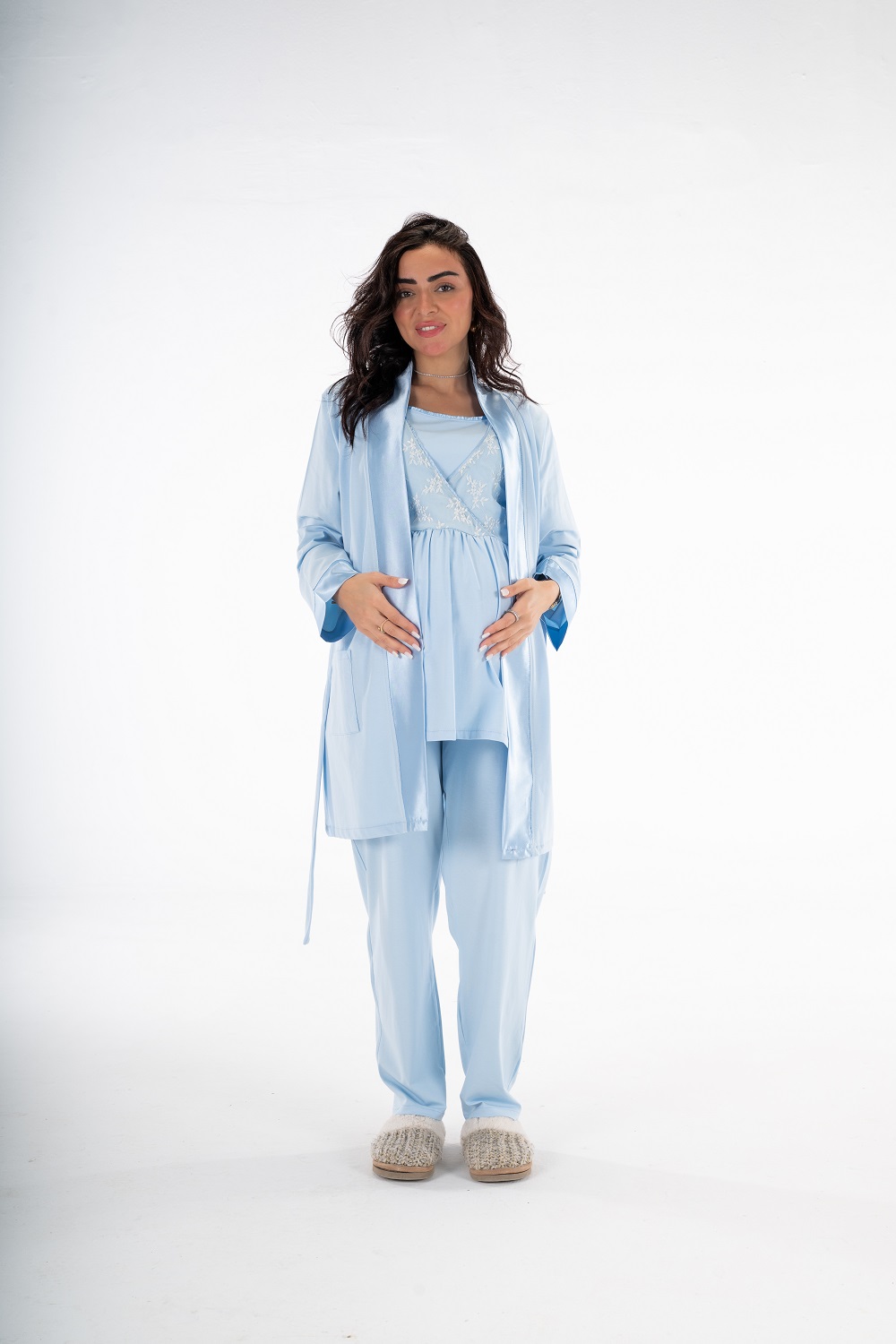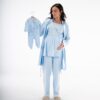 Get the mommy wardrobe essential maternity and nursing set. The set includes: a breathable short robe, and a comfortable half-sleeve PJ with adjustable waist. Crafted from premium materials, this set offers both comfort and style throughout your pregnancy.
